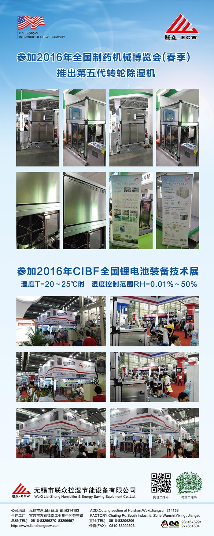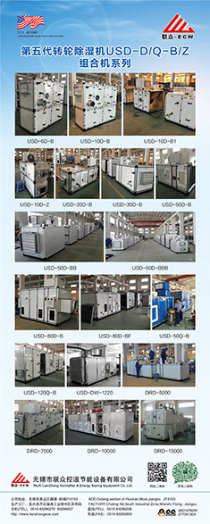 無錫市聯眾控濕節(jié)能設備有限公司成立于2004年2月,是一家長期致力于把空氣吸附分離技術應用于空氣處理設備的科技型中外合作 企業,主要研發(fā)生產轉輪除濕機組、熱泵除濕機組、空氣與空氣熱 能交換回收機組、蒸發(fā)冷卻空調機組、有機廢氣凈化處理機組等非 標空氣處理設備。隨著生產規(guī)模的不斷壯大和產業化的精細分工, 聯眾公司與2011年10月在江蘇省宜興市萬石鎮工業園茶亭路8號, 一期投資5000萬元,置地25畝、建標準工業廠房10000平方米和辦 公樓3000平方米,重新注冊成立江蘇聯眾聯勝節(jié)能設備有限公司。 企業領導層決定確立江蘇聯眾聯勝公司以研發(fā)生產蒸發(fā)冷卻空調機 組、有機廢氣凈化處理機組等大型節(jié)能環(huán)保空氣處理設備為主;而無錫聯眾控濕公司則在無錫繼續(xù)以研發(fā)生產轉輪除濕機組、熱泵除濕機組、空氣與空氣熱交器為主。在國內暖通空調工程領域,聯眾控濕公司研發(fā)各類轉輪除濕機的技術能力、生產各類轉輪除濕機的 裝備制造工藝水平處于本行業前沿。